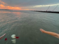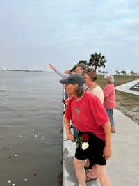 On January 1st, the entire family gathered on the same gulf shore my mom’s ashes were scattered to do the same with my dads ashes. We then proceeded to the ferry and adjacent park area where each family member placed a white long stemmed rose in the gulf for mom, and a red long stemmed rose for dad.