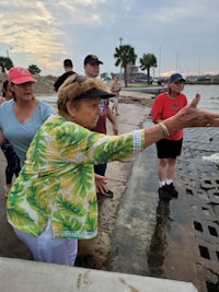 I walked a total of 11.5 miles on my final day. My sister Annie and brother Greg rode the ferry, walking up to join me for the mile before the ferry crossing and rode the ferry back across to Port Aransas with me. As we walked, we approached a line of stopped cars waiting to board the ferry, and one of them happened to be honking with fervor! It was my oldest brother Mike, his wife Candy, with their grandson Jayden! We ran up to their car!!! It was so much fun!