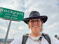 I walked a total of 15.5 miles today. Joan took the day off. Greg joined in walking for 2.2 miles after lunch. A good 4 mile section of today’s route was on a busy four-lane highway through Rockport with no shoulder. It was pretty stressful going but the cars were so cooperative and moved over into the other lane to allow me a little path to walk. I’m so grateful for courteous drivers! Thank goodness for that!!