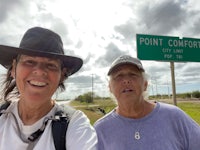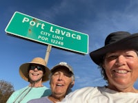 Joan walked this morning and the segment before the long bridge over to Port Lavaca, walking 11.8 miles. It was a gorgeous sunny day in the high 70s. It was very windy but that kept me cool all day.