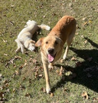 We had two dogs run up to us from a farm super excited to see us. We crossed the road to be on the same side as them so they would not come onto the busy highway. It was everything we could do to get them to go back home because they wanted to walk with us!! So precious. And there was a dog behind a fence that saw us and jumped higher than the fence with excitement!! It was adorable!!
