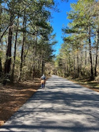 Joan and I walked a total of 15.5 miles today. The weather was absolutely perfect. Mid 50° temperatures, no wind, and beautiful blue skies! Most of the day we walked on a road that took us through the Sam Houston National Forest. It was breathtakingly beautiful!