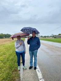 My brother Mike and wife Candy surprised me today!! I was blown away and moved to tears when I saw them. They went to an Andre Boccelli concert last night in Milwaukee and came from there this morning to Benld IL. They got here just in time to walk with me a few blocks as I walked in to our stopping point for the day. I guess they’ve been secretly planning this with Clarence for days. He sure knows how to keep a secret! He didn’t even tell Joan until this morning! Had a quick lunch with them as they had yet to drive to Bloomington IN where they are staying tonight. Then they pick up their new Scotty at 9 am tomorrow. I still can't believe it!! Very special!!! Candy left me with some Walkers shortbread Scotty shaped cookies. I’m still reeling!!!