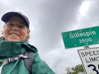 We ate lunch in Gillespie at G-pie burgers. When I went up to the counter to order I recognized the woman helping us as the same woman that passed me, stopped, and turned around to come back to ask if I needed a ride. Can you believe that?!?She was on her way to work!! And took the time to check on me. Her name was Yvonne. I absolutely am overjoyed by the synchronicity and love in this world!!