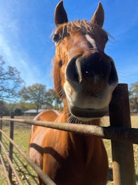 For the first time, we had two horses actually walk to the fence, which was right by the road, to meet us!! We got to pet them both. It was just precious!!