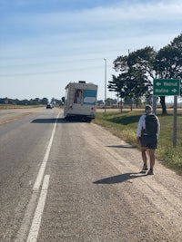 Once out of Sterling /Rock Falls, we spent all day on a busy two lane highway (IL-40). Lots of waves from the cars and trucks helped carry us through the day. A farmer crossing the street to his mailbox asked if we needed water. That was sweet of him. Joan and I walked a total of 17.2 miles today, 12.8 before lunch and 4.5 after. It was a hot 88 degrees today. It was hard mostly because or the heat. Feeling good physically otherwise.