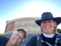 Joan and I walked a total of 15 miles today, all of which was on Illinois 159 south. The entire day was spent walking through St. Louis suburbs on the Illinois side. Another day passed without any interaction with people, however a white truck did honk and put his arm out the window to wave at us. For lunch we ate at a restaurant called Cheddar Scratch Kitchen. I had a scrumptious salad with lemon pepper grilled chicken, candied walnuts and honey mustard dressing. We had another gorgeous day with blue skies, low 70s and a nice breeze to keep us cool throughout the day.