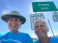 I did a total of 14.2 miles today all on State Route 4. Walked 10.3 miles before lunch. Joan joined me for 5.7 of them and her knees couldn’t do anymore so Clarence picked her up. They went grocery shopping and picked up Panera soups for lunch. My favorite!! Joan and I walked another 3.9 miles after lunch. I walked through 4 towns today: Auburn, Thayer, Viirden, and Girard. That’s the most in one day of the journey so far. They were all really nice, clean and quite fun to walk through. Lots of high school team pride signs. The weather was just perfect. Sunny, nice wind and temps in low 70s. Wonderful walking day overall.