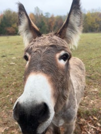 Joan and I walked a total of 15.3 miles today. The morning portion was all gravel country roads. Two adorable donkeys walked up to us letting us pet them. Loved that!! The Google route actually wanted to take us down a grassy unmarked not even a road section that looked like hunters row with deer stands everywhere. We said no way to that since it’s deer hunting season. The second route option added 1.3 miles to the day but we thought better to be safe than sorry!!!